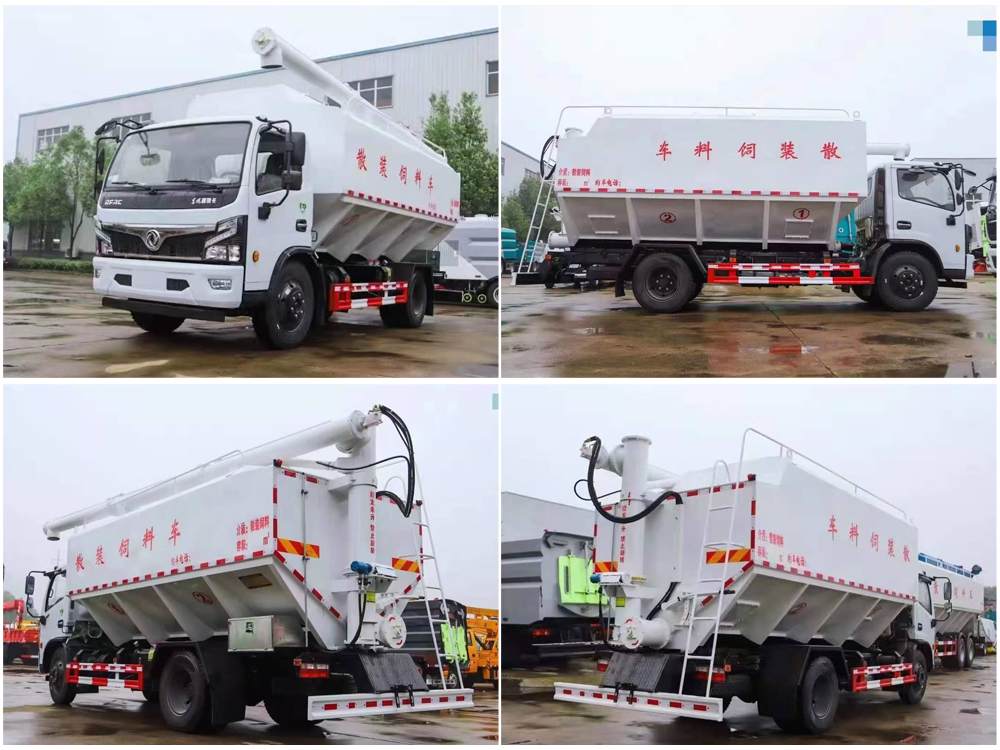 散裝飼料車,又名散裝飼料運輸車,飼料運輸車。結構簡單、性能可靠、輸送量大、操控方便、機動性強、對物料無污染等特點,廣泛應用于各大中小型養殖企業的飼料的運輸。主要用于從飼料廠向畜牧場、養禽場及飼料加工用戶運輸散裝飼料成品或飼料生產原糧,同時它也可用來運輸某些無腐蝕性粉粒狀原料,如制藥廠粉料和糧庫周轉。