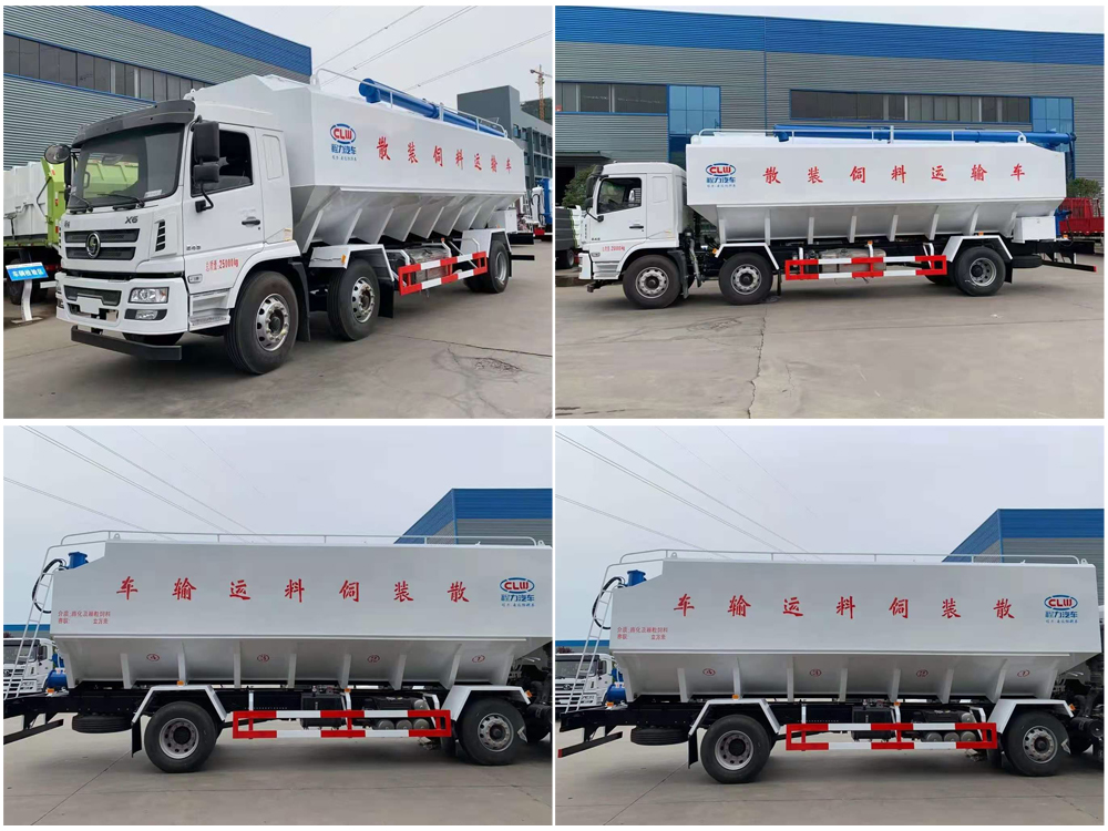 散裝飼料車,又名散裝飼料運輸車,飼料運輸車。結(jié)構(gòu)簡單、性能可靠、輸送量大、操控方便、機動性強、對物料無污染等特點,廣泛應(yīng)用于各大中小型養(yǎng)殖企業(yè)的飼料的運輸。主要用于從飼料廠向畜牧場、養(yǎng)禽場及飼料加工用戶運輸散裝飼料成品或飼料生產(chǎn)原糧,同時它也可用來運輸某些無腐蝕性粉粒狀原料,如制藥廠粉料和糧庫周轉(zhuǎn)。