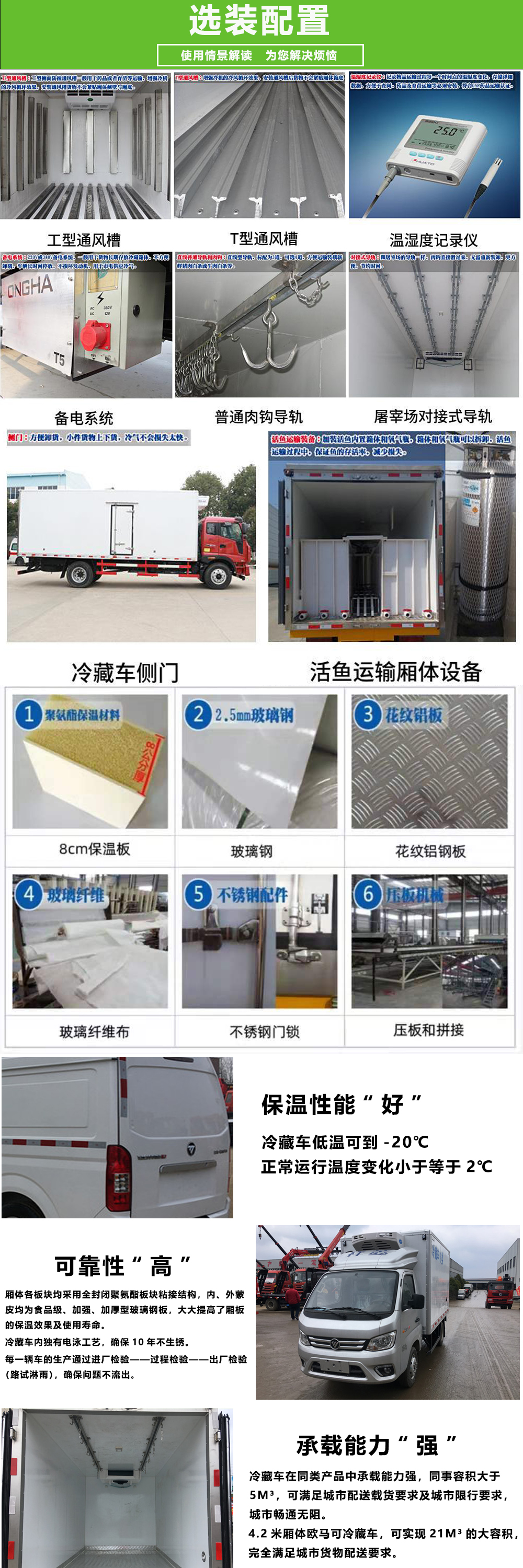 冷藏車是指用來維持冷凍或保鮮的貨物溫度的封閉式廂式運(yùn)輸車,冷藏車是裝有制冷機(jī)組的制冷裝置和聚氨酯隔熱廂的冷藏專用運(yùn)輸汽車,冷藏車可以按生產(chǎn)廠家、底盤承載能力、車廂型式來分類。常用于運(yùn)輸冷凍食品(冷凍車),奶制品(奶品運(yùn)輸車)、蔬菜水果(鮮貨運(yùn)輸車)、疫苗藥品(疫苗運(yùn)輸車)等。