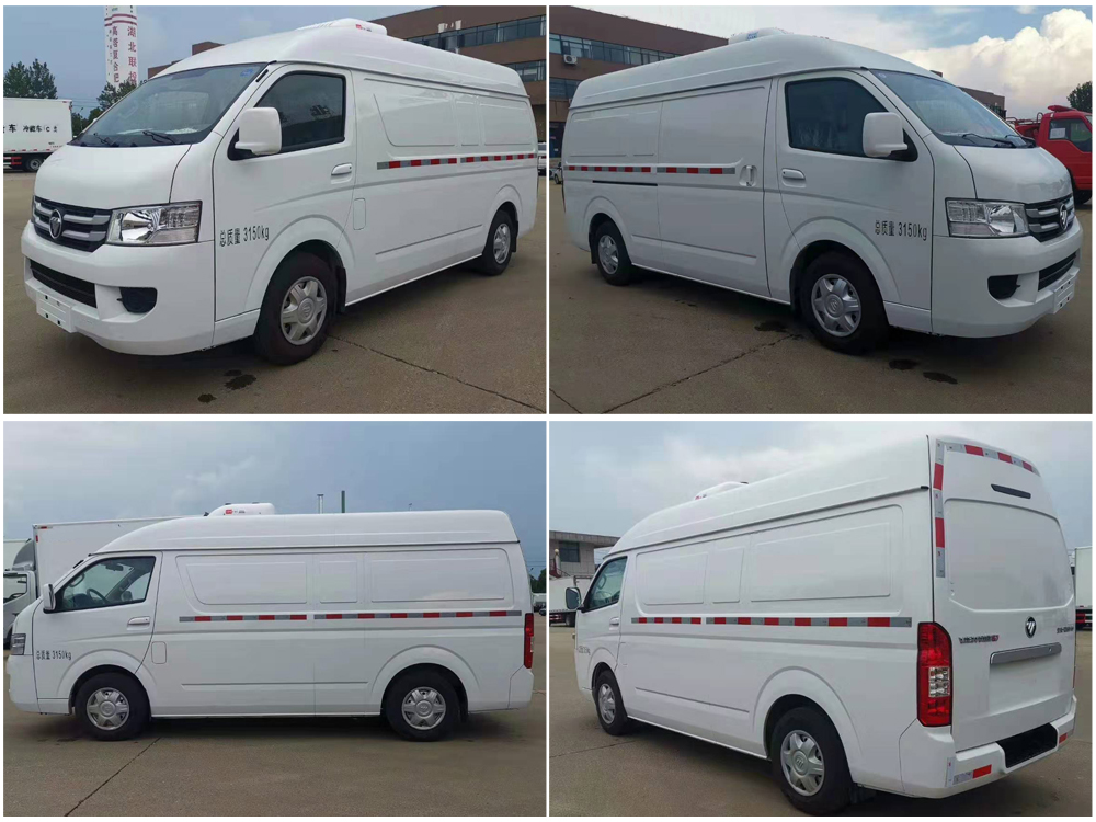 福田G7面包冷藏車,國六汽油,整車型號:BJ5039XLC-C5,底盤型號:BJ6539B1PVA-C5G7,準乘人數: 2人,豪華車身,5檔,駕駛室空調,暖風,感載比例閥,軸距:3050,發動機:4Q20M,功率:95KW,130馬力,總質量:3150kg,整備質量:2145kg,額定載質量:875kg,整車尺寸:5320×1695×2500(mm),箱體內空間約:5.5立方米(2900×1430×1430mm),藍牌