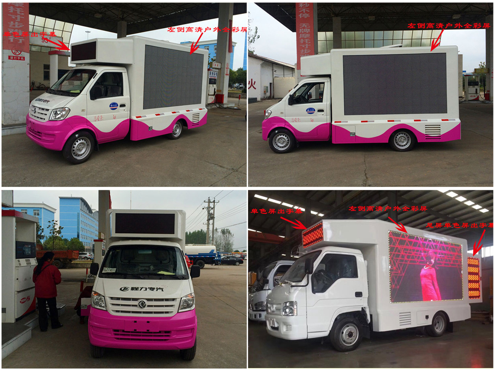 廣告宣傳車(chē)由EQ5040底盤(pán)(牽引系統(tǒng))、大屏系統(tǒng)、供電系統(tǒng)、操作系統(tǒng)四大部分組成,廣泛用于企事業(yè)單位的宣傳、產(chǎn)品推廣、品牌推廣,現(xiàn)場(chǎng)展示,體育賽事、演唱會(huì)、音樂(lè)會(huì)及選秀活動(dòng)等。也可在繁華商業(yè)區(qū)、廣場(chǎng)、居民小區(qū)、廣場(chǎng)公園等區(qū)域與觀眾或消費(fèi)者進(jìn)行現(xiàn)場(chǎng)展示、交流、互動(dòng),宣傳范圍廣泛,可使客戶(hù)獲得最大的廣告?zhèn)鞑バЧ?/p>