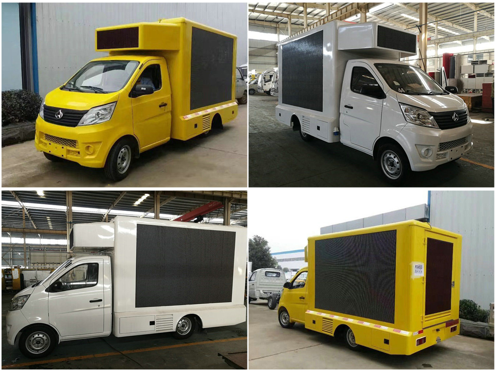 廣告車選裝配置:客戶可根據需求選裝屏幕清晰度(P10彩屏、P8彩屏、P6彩屏、P5彩屏、P4彩屏)、單面彩屏、雙面彩屏、雙面